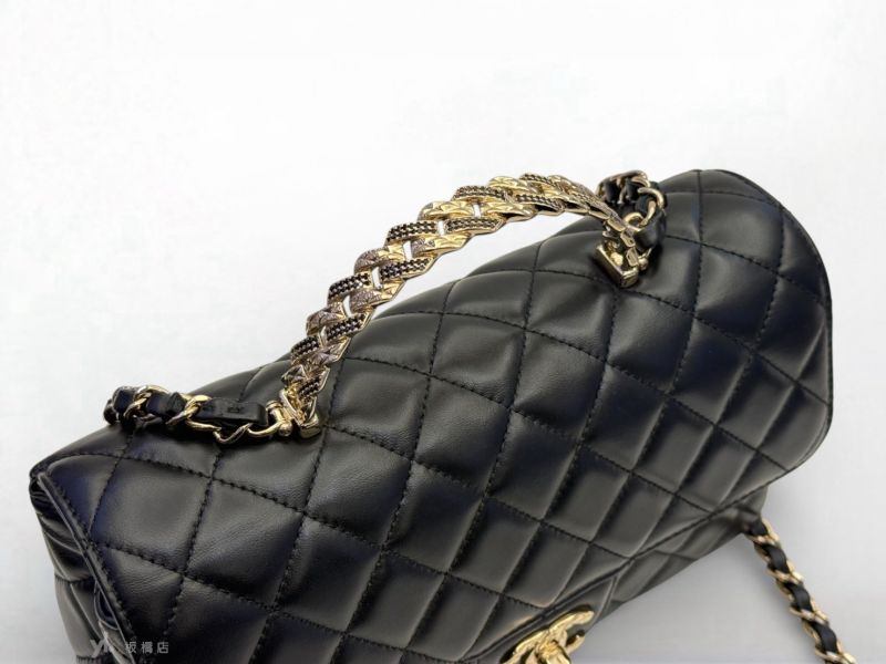 路徑: 首頁 / 商品 / BRAND / Chanel / S5309 CHANEL包包 黑羊皮金釦水鑽手把口蓋包AS4925 (板橋府中店)...