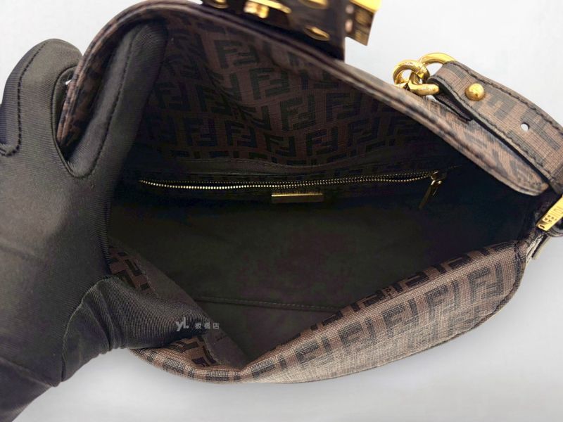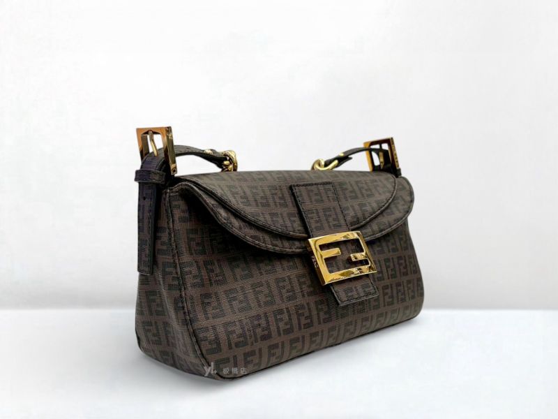 S5313 Fendi包包 Zucchino 棕色下蓋鏈條腋下包 (板橋府中店)
