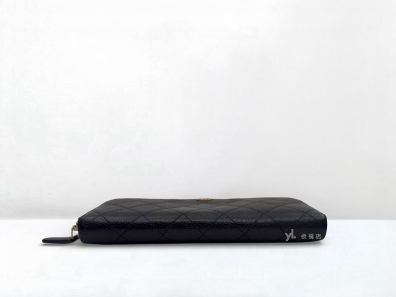 S5334 CHANEL皮夾 黑荔枝皮金釦ㄇ拉長夾 A50097 (板橋府中店)