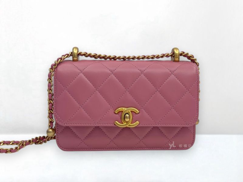 S5352 CHANEL包包 24C粉色牛皮金釦雙金球下蓋包/AS2649 (板橋... S5360 CHANEL包包 黑荔枝皮銀釦COCO25 A01112 (板橋府中店)