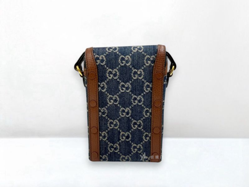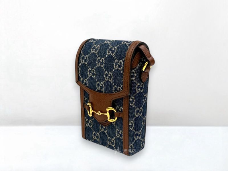 S5376 GUCCI包包 1955棕牛皮藍牛仔手機包625615 (板橋府中店)