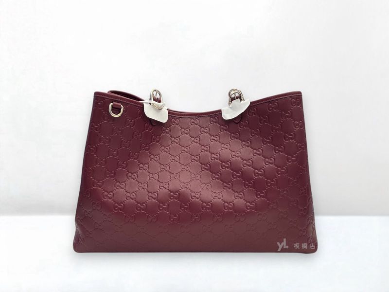 S5389 GUCCI包包 酒紅色牛皮壓紋托特包815213 (板橋府中店)
