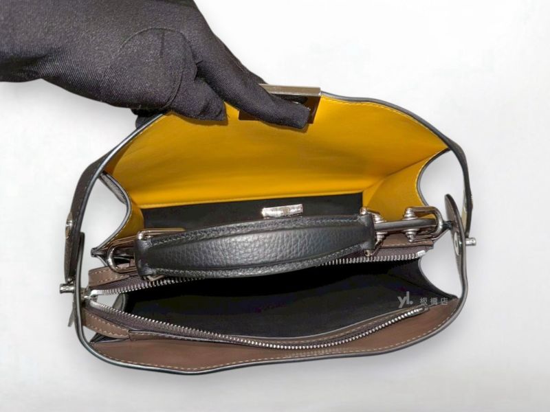 S5397 FENDI包包 黑色牛皮銀釦 Peekaboo ISeeU手提斜背包 (板橋府中店)