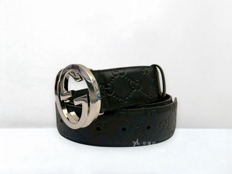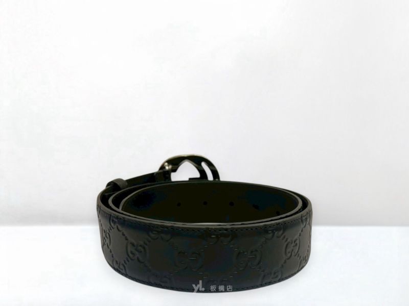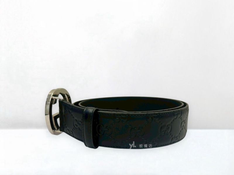 路徑: 首頁 / 商品 / BRAND / Gucci / S5444 GUCCI皮帶 GG黑色壓紋牛皮銀釦皮帶411924 (板橋府中店)...