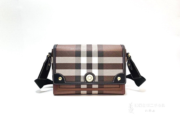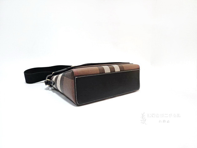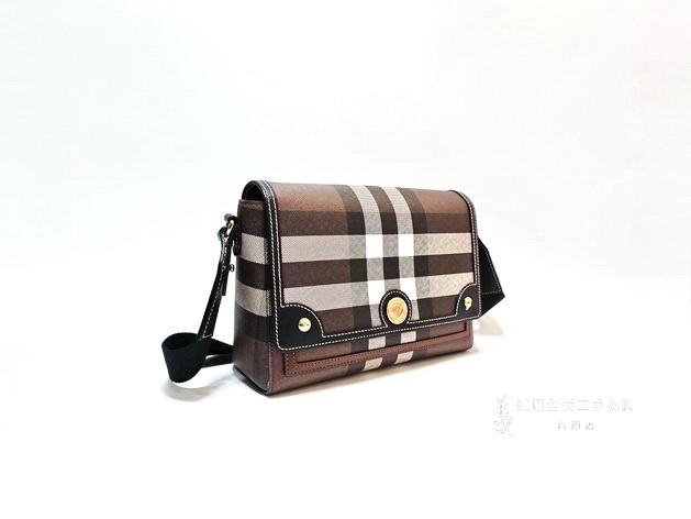 路徑: 首頁 / 商品 / BRAND / 其他品牌 / V2808 Burberry包包PVC深咖經典格紋黑皮邊金釦下蓋磁釦斜背包80713851 (台南店)...