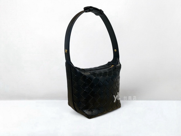 V2885 BV包包黑小牛皮細編織Candy Wallace金釦手提肩背腋下包 (台南店)
