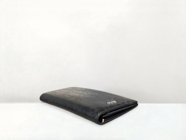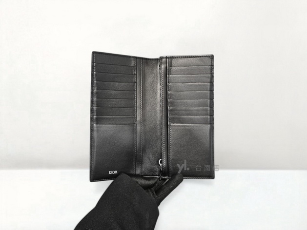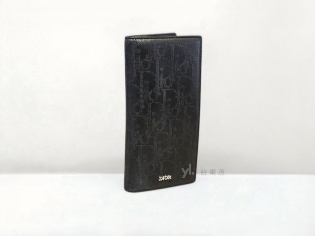 V3480 Dior皮夾 黑洞洞牛皮銀釦內一字拉零錢袋16卡對開長夾2ESBC002VPD-H03E(台南店)