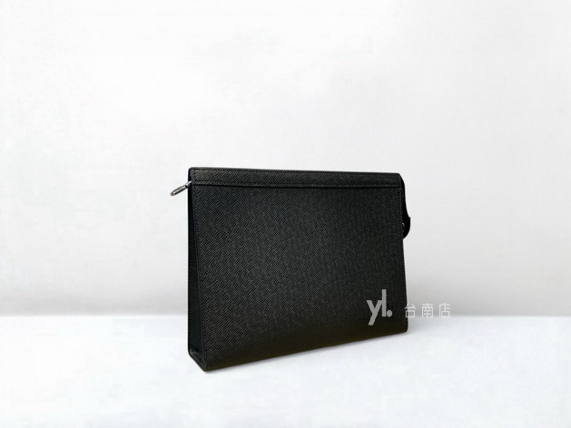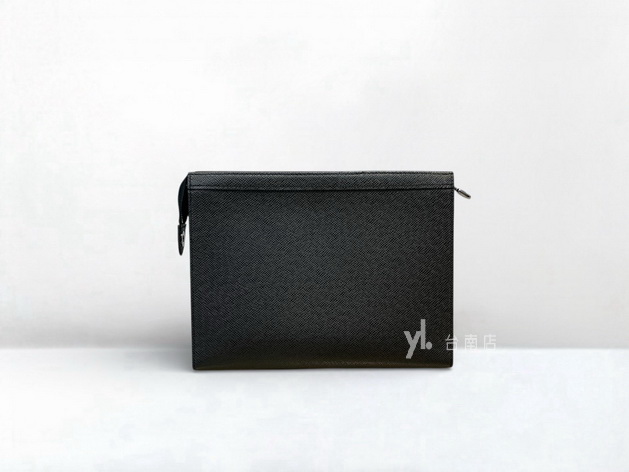 V3581 LV包包 黑Taiga牛皮PochetteVoyage銀扣一字拉手拿包M30547 (台南店)