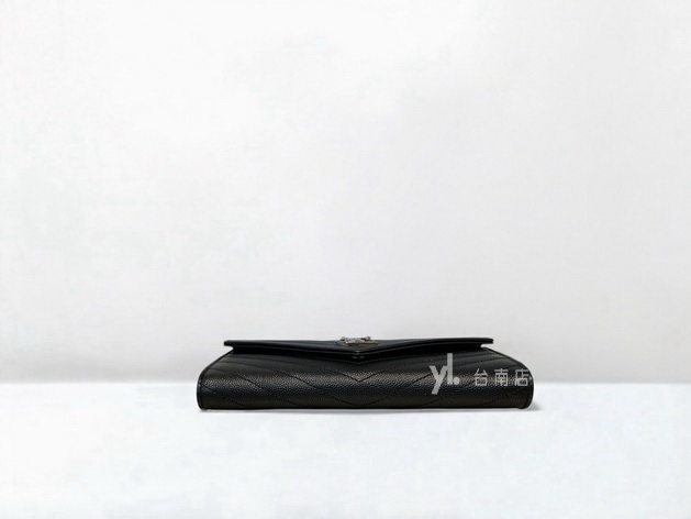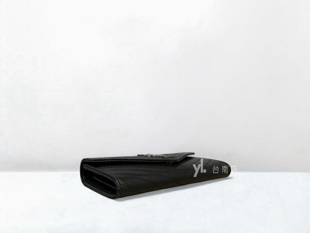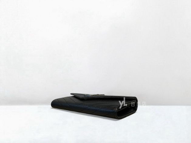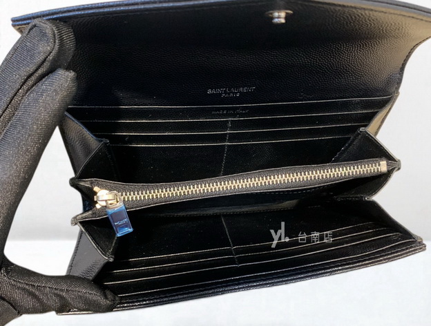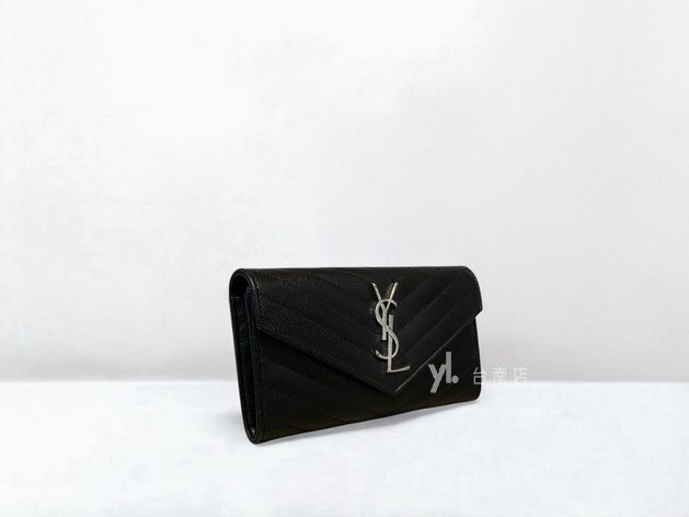 V3828 YSL皮夾 黑荔枝牛皮銀釦下蓋12卡長夾 (台南店)
