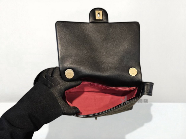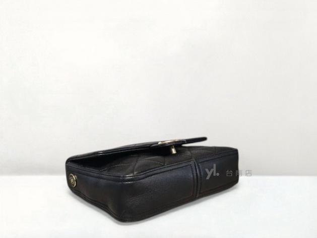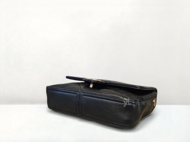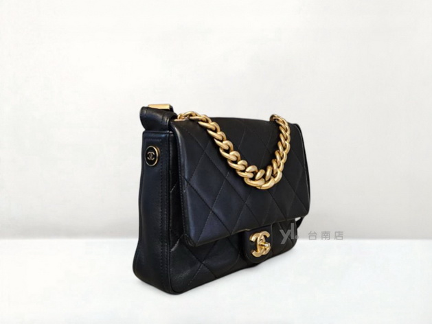 V3885 Chanel包包 黑羊皮大菱格紋金釦下蓋手提間斜背包AS2842(台南店)
