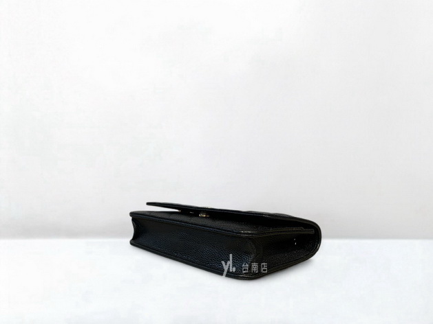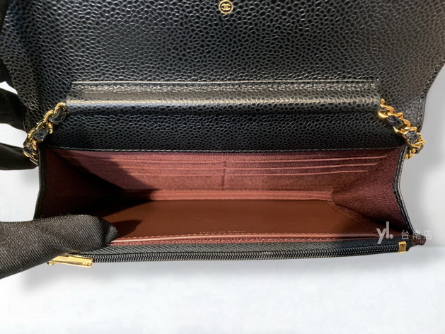 V3948 Chanel包包黑荔枝牛皮菱格紋Woc金釦下蓋6卡斜背鏈包AP0250 (台南店)