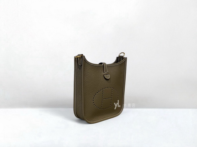 V3977 Hermes包包大象灰T/C皮Mini Evelyne金釦藍背帶肩斜背包 (台南店)