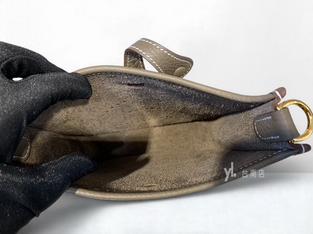 路徑: 首頁 / 商品 / BRAND / Hermes / V3977 Hermes包包大象灰T/C皮Mini Evelyne金釦藍背帶肩斜背包 (台南店)...