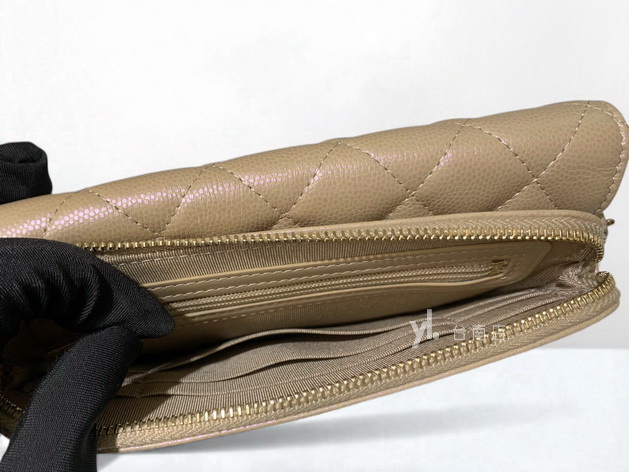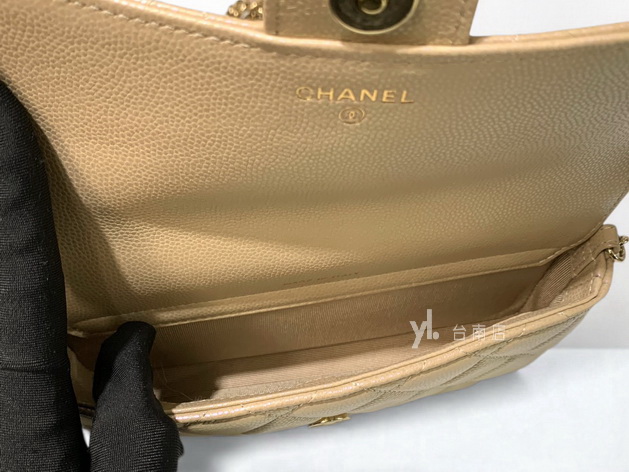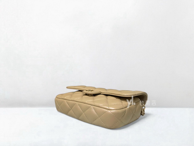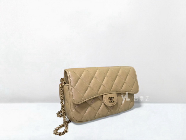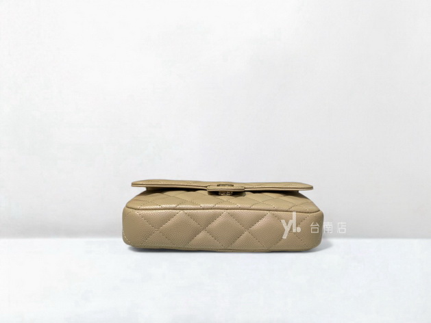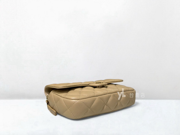 V4048 Chanel包包 珠光奶茶荔枝牛皮淡金釦前下蓋後ㄇ拉3卡斜背鏈包AP2096 (台南店)