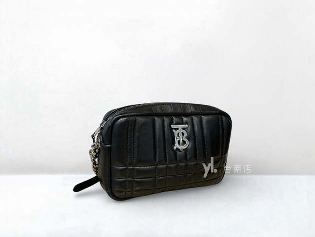 V4162 Burberry包包 黑羔羊皮Lola絎縫銀釦ㄇ拉斜背相機包 (台南店)