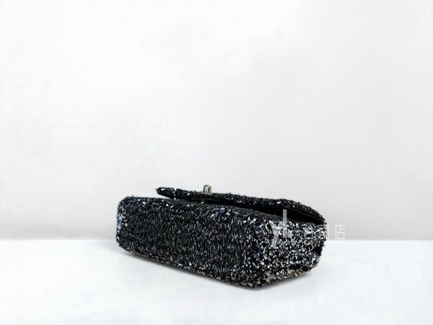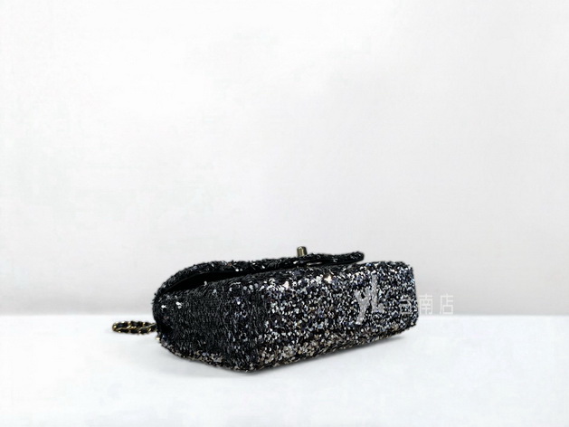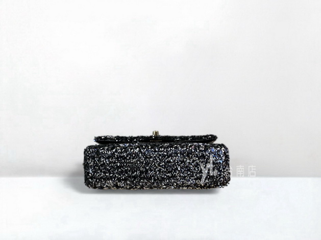 V4239 Chanel包包 黑銀亮片金釦下蓋肩斜背晚宴口蓋包AS4516 (台南店)