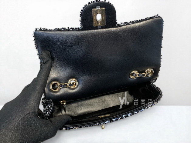 路徑: 首頁 / 商品 / BRAND / Chanel / V4239 Chanel包包 黑銀亮片金釦下蓋肩斜背晚宴口蓋包AS4516 (台南店)...