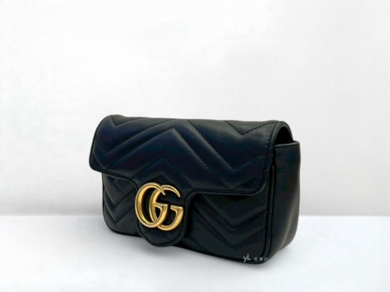 Y1976 GUCCI包包 Marmont黑牛皮金釦迷你鍊條斜背包476433 (板橋府中店)