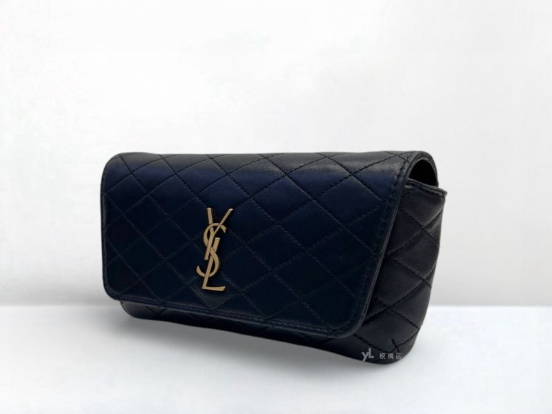 路徑: 首頁 / 商品 / BRAND / YSL / Y1977 YSL包包 Gaby黑羊皮金扣翻蓋小型手機手拿/斜背包 (板橋府中店)...
