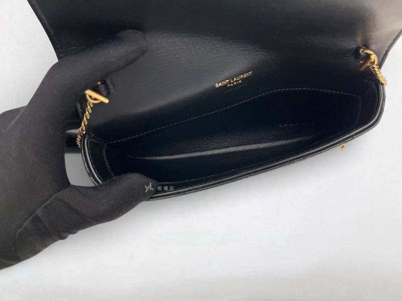 Y1977 YSL包包 Gaby黑羊皮金扣翻蓋小型手機手拿/斜背包 (板橋府中店)