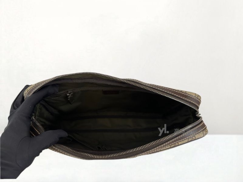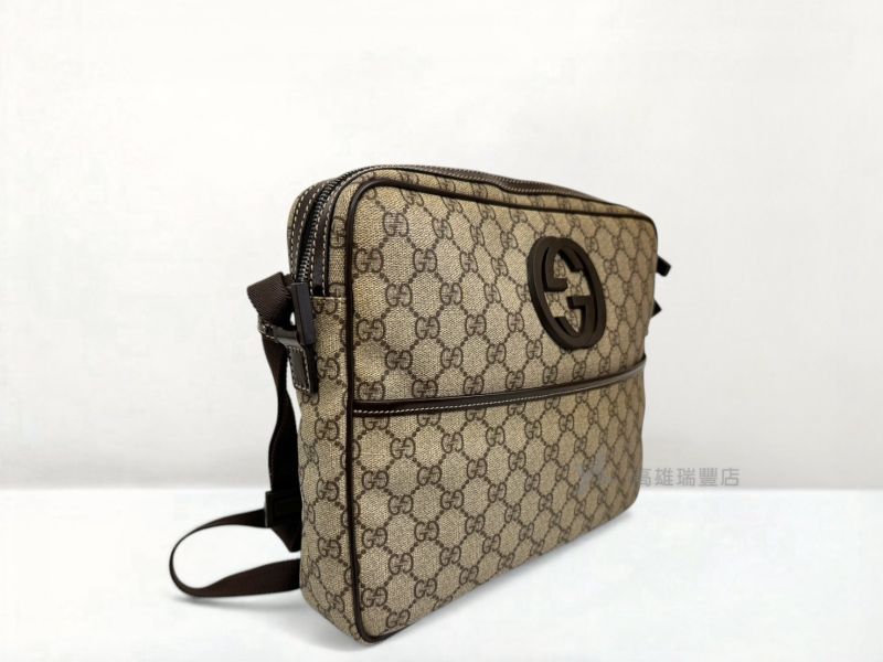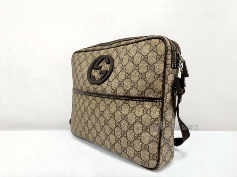 Z0274 Gucci包包 PVC深棕牛皮邊銀釦前磁吸口袋斜背包 (瑞豐店)